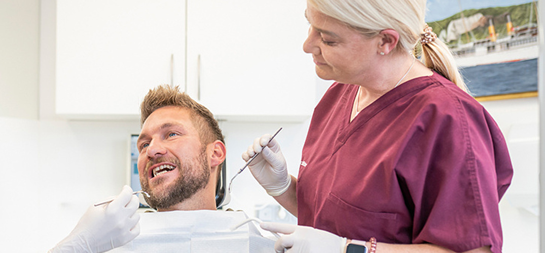 Die Therapie beginnt mit einer umfangreichen Prophylaxe-Behandlung und wird durch eine lokale Antibiotikagabe unterstützt. Mithilfe von speziellen Verfahren therapieren wir die Parodontitis minimalinvasiv und erhalten damit die Stabilität der Zähne.